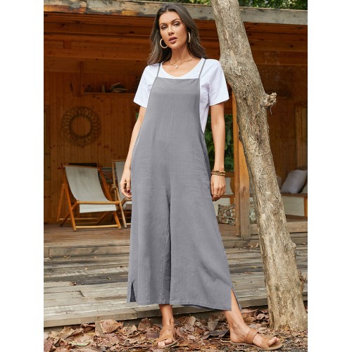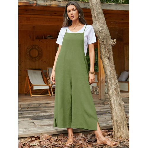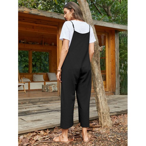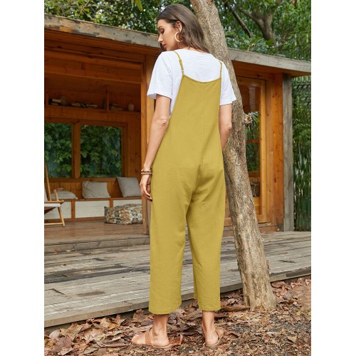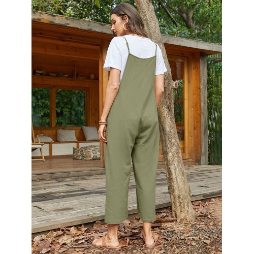 Pocket Solid Loose Fit Brief Summer Jumpsuit
