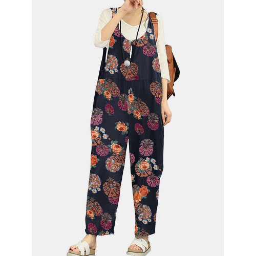 Tribal Flower Print Wide Leg Jumpsuit For Women