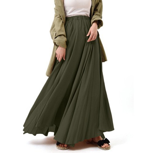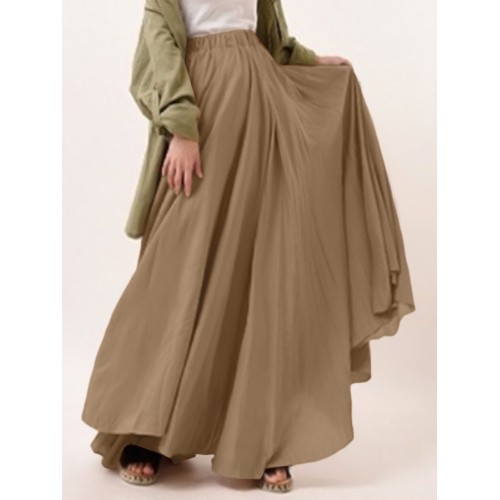 Casual Solid Color High Waist Pleated Irregular Hem Holiday Swing Maxi Skirts