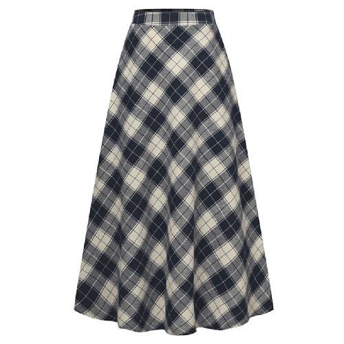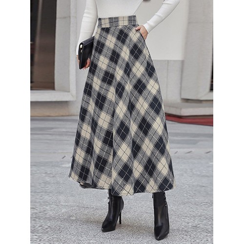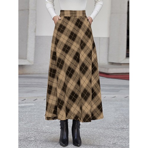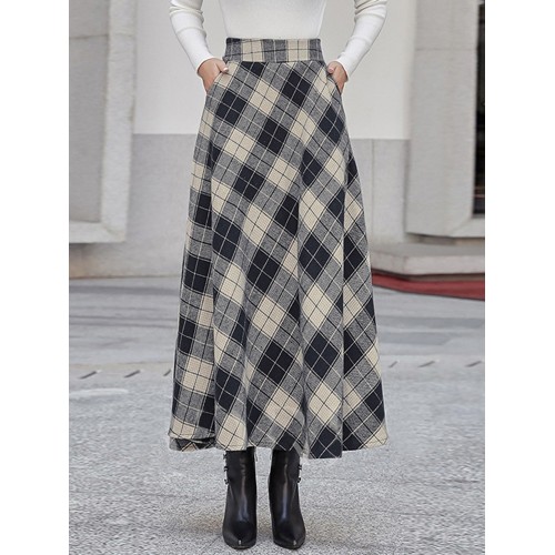 Women Plaid A Line Vintage High Waist Skirts With Pocket