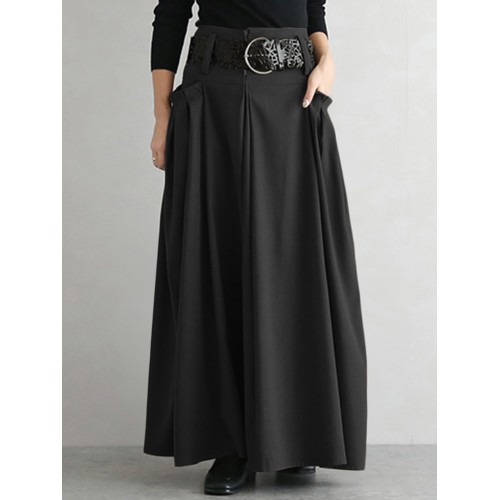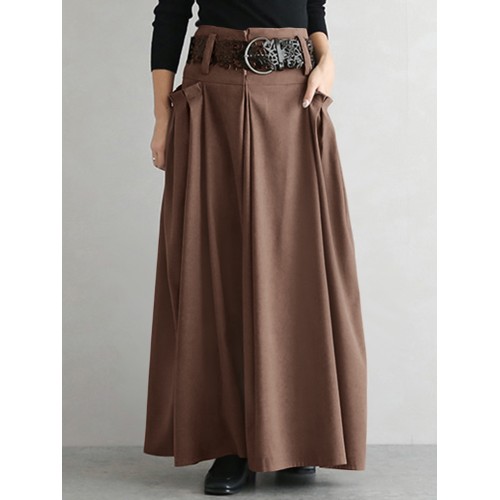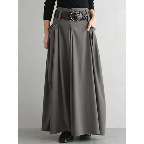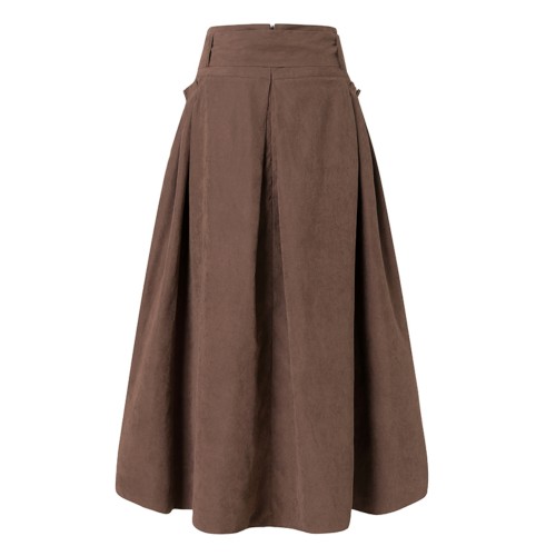 Women Solid Side Pockets Lace Up Party A Line Skirt with Back Zipper
