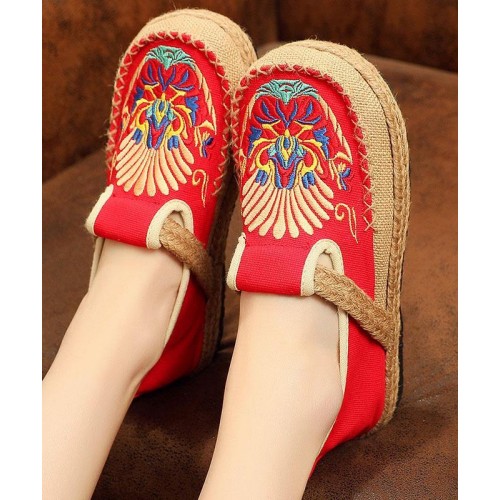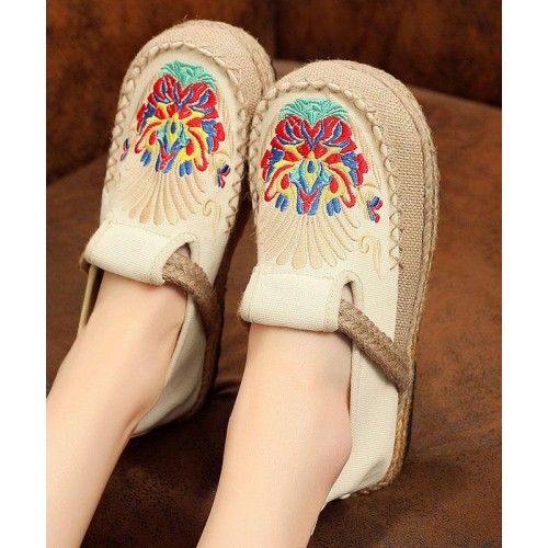 Black Cotton Linen Embroideried Fabric Flat Feet Shoes Splicing Flats