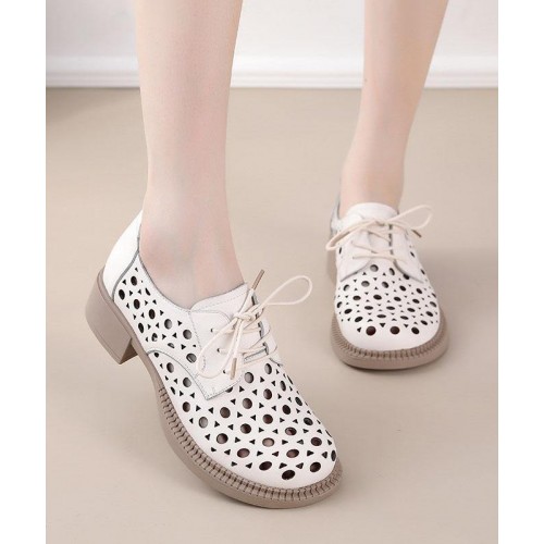 Beige Flat Feet Shoes Hollow Out Cross Strap Flat Feet Shoes